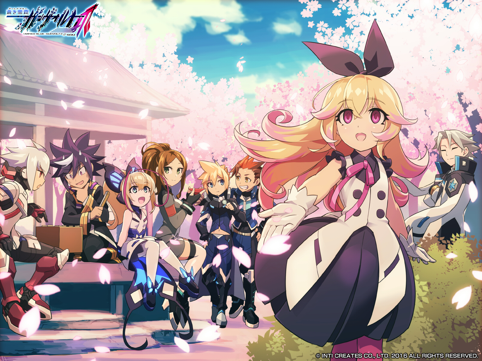 春爛漫。満開の桜の下でお花見を楽しむガンヴォルト達の壁紙をプレゼント!